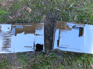 i got these great frames at home goods. i found two and while i didn't hate the color, most of our other frames are brown or black, so i thought they could use a coat of spray paint!
